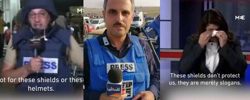 فلسطین کے مقامی ٹیلی ویژن چینل کے لیے کام کرنے والا ایک مقامی صحافی اور ان کے اہل خانہ گزشتہ روز غزہ پر اسرائیلی بمباری میں جاں بحق ہوگئے، صحافی کے جاں بحق ہونے کی اطلاع دینے والے ساتھی رپورٹر لائیو کوریج کے دوران آبدیدہ ہوگئے اور احتجاج کرتے ہوئے پریس ہیلمٹ اور شیلڈ اتار کر زمین پر پھینک دی۔نشریاتی ادارے فلسطین ٹی وی اسٹیشن نے بتایا کہ ’ساتھی صحافی محمد ابو حاطب اپنے خاندان کے افراد سمیت اس وقت شہید ہوئے جب اسرائیل کی جانب سے غزہ کے جنوبی علاقے خان یونس میں بمباری کی گئی جہاں صحافی کا گھر بھی بمباری کی لپیٹ میں آگیا‘۔خان یونس کے ناصر ہسپتال کے طبی ذرائع نے بتایا کہ حملے میں کم از کم 11 افراد مارے جاچکے ہیں۔فلسطینی صحافیوں کی یونین کا کہنا ہے کہ ایک ماہ سے بھی کم عرصے میں اسرائیلی فضائی حملوں میں مرحوم صحافی کے خاندان کے 27 لوگ مارے جاچکے ہیں۔مشرقی وسطیٰ کی خبروں پر نظر رکھنے والی نیوز ویب سائٹ مڈل ایسٹ آئی کی جانب سے سماجی پلیٹ فارم ایکس پر فلسطین کے مقامی چینل کی ویڈیو شئیر کی گئی جس میں مرحوم صحافی محمد ابو حاطب کے ساتھی رپورٹر ان کے جاں بحق ہونے کی اطلاع دے رہے ہیں۔غزہ کی لائیو کوریج کے دوران رپورٹر بتاتے ہیں کہ محمد ابو حاطب اپنی اہلیہ، بیٹے اور بھائی سمیت جاں بحق ہوگئے ہیں۔لائیو کوریج کے دوران رپورٹر دکھ بھری آواز میں کہتے ہیں کہ ’ہم تھک چکے ہیں، اب مزید برداشت نہیں کرسکتے۔‘انہوں نے کہا کہ ’ہر ایک منٹ بعد کوئی نہ کوئی اپنی جان کی بازی ہار رہا ہے، ایسا لگتا ہے کہ غزہ میں ہم جس تباہی اور جرم کو برداشت کر رہے ہیں دنیا اسے نہیں دیکھ رہی۔‘رپورٹر کا کہنا تھا کہ ’بین الاقوامی سیکیورٹی بالکل نہیں ہے، کوئی بھی چیز ہمیں تحفظ نہیں دے سکتی، یہاں تک کہ ہم جو شیلڈز یا ہیلمٹ پہنے ہوئے ہیں یہ بھی ہماری حفاظت نہیں کرسکتے۔‘اس دوران صحافی آبدیدہ ہوگئے اور لائیو کوریج کے دوران پریس ہیلمٹ اور شیلڈ جیکٹ اتار کر زمین پر پھینک دیے۔صحافی کی لائیو رپورٹنگ کے دوران اینکر بھی اپنے آنسو نہ روک سکیں اور وہ بھی آبدیدہ ہوگئیں۔صحافی نے اپنی رپورٹنگ جاری رکھتے ہوئے کہا کہ ’یہ صرف نام کی چیزیں ہیں، ان کا کوئی فائدہ نہیں ہے، یہ کسی بھی صحافی کو تحفظ نہیں دے سکتیں۔‘انہوں نے دکھ بھری آواز میں کہا کہ ’یہ شیلڈ ہمارا حفاظت نہیں کرسکتی، ہم بھی متاثرین ہیں جو لائیو ٹی وی رپورٹنگ کررہے ہیں، بمباری میں شہید ہونے والے لوگوں کی طرح ہم بھی اپنی باری کا انتظار کررہے ہیں‘۔ان کا کہنا تھا کہ ’آدھے گھنٹے پہلے ہمارے ساتھی صحافی محمد ابو حاطب ہمارے ساتھ تھے لیکن اب وہ یہاں نہیں ہیں، وہ اپنی اہلیہ، بیٹے اور بھائی سمیت جاں بحق ہوچکے ہیں۔ ’یاد رہے کہ گزشتہ ماہ جھڑپوں کے دوران جنوبی لبنان پر اسرائیلی گولہ باری میں رائٹرز کے ایک فوٹو جرنلسٹ بھی مارے گئے تھے۔قبل ازیں اسرائیل کی غزہ میں جاری بمباری سے قطری نشریاتی ادارے ’الجزیرہ‘ کے دو صحافی اپنے اہل خانہ سمیت جاں بحق ہو گئے تھے۔کمیٹی ٹو پروٹیکٹ جرنلسٹ (سی پی جے) کی رپورٹ کے مطابق 2 نومبر تک کی ابتدائی تحقیقات کے مطابق7 اکتوبر سے شروع ہونے والی اسرائیلی بمباری میں تقریباً 36 صحافی اور میڈیا کارکن مارے جاچکے ہیں، جن میں 31 فلسطینی، 4 اسرائیلی اور 1 لبنانی صحافی شامل ہیں۔اس کے علاوہ 8 صحافی زخمی اور 9 صحافی لاپتا یا حراست میں لیے گئے ہیں۔اسرائیل ڈیفنس فورسز (آئی ڈی ایف) نے رائٹرز اور ایجنسی فرانس پریس نیوز ایجنسیوں کو بتایا کہ وہ غزہ کی پٹی میں کام کرنے والے صحافیوں کے تحفظ کی ضمانت نہیں دے سکتے۔