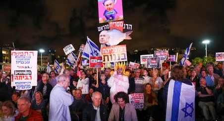 تل ابیب: اسرائیلی وزیر اعظم بنجامن نیتن یاہو کے خلاف تل ابیب میں انتخابات کا مطالبہ کرتے ہوئے ہزاروں اسرائیلیوں نے زبردست احتجاجی مظاہرہ کیا۔ اسرائیلیوں نے یہ مظاہرہ غزہ میں اسرائیلی جنگ کے نصف سال پورا ہونے پر کیا۔ خبروں کے مطابق اس احتجاجی مظاہرے میں دسیوں ہزار اسرائیلیوں نے حصہ لیا اور نیتن یاہو کے خلاف نعرے بازی کی۔اسرائیلی میڈیا کے مطابق گذشتہ سال متنازعہ عدالتی اصلاحات کے خلاف بڑے پیمانے پر احتجاج کے بعد سے تقریباً ایک لاکھ لوگ تل ابیب کے ایک چوراہے پر جمع ہوئے جس کا نام بدل کر ’ڈیموکریسی اسکوائر‘ رکھا گیا ہے۔ مظاہرین نے ’فوری انتخابات‘ کے نعرے لگائے اور نیتن یاہو کے استعفیٰ کا مطالبہ کیا۔ یہ مظاہرہ ایک ایسے وقت میں کیا گیا ہے جب غزہ میں جنگ آج ساتویں مہینے میں داخل ہو گئی ہے۔خبروں کے مطابق دوسرے شہروں میں بھی ریلیاں نکالی گئیں، جن میں اسرائیلی اپوزیشن لیڈر یائیر لپید نے واشنگٹن میں مذاکرات کے لیے روانہ ہونے سے پہلے کفار سابا میں ایک ریلی میں شرکت کی۔ انہوں نے مظاہرین سے خطاب کرتے ہوئے کہا کہ حکومت نے کچھ نہیں سیکھا، حکمران نہیں بدلے۔ انہوں نے مزید کہا کہ جب تک ہم انہیں گھر نہیں بھیجیں گے وہ اس ملک کو آگے بڑھنے کا موقع نہیں دیں گے۔اسرائیلی میڈیا نے تصدیق کی ہے کہ تل ابیب کے جلوس میں مظاہرین اور پولیس کے درمیان جھڑپیں ہوئی ہیں جب کہ پولیس نے اعلان کیا کہ انہوں نے ایک احتجاجی کو گرفتار کر لیا ہے۔ تل ابیب میں مظاہرین کے ساتھ غزہ میں قیدیوں کے اہل خانہ اور ان کے حامی بھی شامل تھے۔ تل ابیب کے شمال میں واقع سیزریا میں پولیس اور مظاہرین کے درمیان اس وقت جھڑپیں ہوئیں جب مظاہرین نے نیتن یاہو کی نجی رہائش گاہ تک پہنچنے کی کوشش کی۔ اتوار کو یروشلم سمیت کئی دیگر شہروں میں بھی مظاہرے ہونے والے ہیں۔
