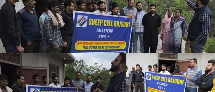راجوری//رائے دہندگان میں بیداری پھیلانے کے لئے آج تھانہ منڈی اور گمبھیر برہمنا علاقوں میں ایک بڑے پیمانے پر سسٹمیٹک ووٹرز ایجوکیشن اینڈ پارٹیسی پیشن (ایس وِی اِی اِی پی) مہم کا آغاز کیا گیا۔ڈسٹرکٹ سویپ ٹیم نے ایس وِی اِی اِی پی 87۔تھانہ منڈی کے ساتھ مل کر تھانہ منڈی کے مضافات میں گھر گھر جا کر جامع مہم چلائی جس میں وارڈ 10، 11 اور 12 پر توجہ مرکوز کی گئی۔ اِس کے علاوہ ایک اورڈِسٹرکٹ سویپ ٹیم نے اسی مقصد کے لئے گمبھیر برہمنا میں کوششیں شروع کیں۔. ڈسٹرکٹ الیکشن آفیسر راجوری اوم پرکاش بھگت کی نگرانی میں پروفیسر منظور احمد ڈار، پروفیسر خالد ریاض، پروفیسر اعجاز نذیر، محمد ایاز رینہ، سہیل ملک، مشتاق احمد اور آفتاب شال پر مشتمل ٹیموں نے ڈی این او سویپ پروفیسر محمد اقبال رینہ کی قیادت میں تھانہ منڈی اور گمبھیر برہمنا میں رہائشیوں اور راہگیروں کے ساتھ انتھک مصروف رہے۔اِس مہم کا بنیادی مقصد آئین میں درج حق رائے دہی کی اہمیت کو اُجاگر کرنا تھا۔ دونوں ٹیموں کے ممبران نے ووٹنگ کے عمل میں شرکت کی اہمیت کے بارے میں قیمتی معلومات فراہم کیں جس سے ہر رجسٹرڈ ووٹر کی اپنے حق رائے دہی کا استعمال کرنے کی اہمیت پر زور دیا گیا۔ اُنہوں نے الیکشن کمیشن آف اِنڈیا کے 75 فیصد ووٹنگ ٹرن آؤٹ حاصل کرنے کے مشن کو حاصل کرنے میں رائے دہندگان کے ٹرن آؤٹ کے اہم کردار پر زور دیا۔ڈسٹرکٹ سویپ ٹیم نے آئندہ انتخابات میں وسیع پیمانے پر شرکت کو یقینی بنانے کے لئے اپنے عزم کا اعادہ کیا اور تمام اہل رائے دہندگان کی حوصلہ افزائی کی کہ وہ اَپنا ووٹ کاسٹ کر کے اَپنا شہری فرض پورا کریں۔