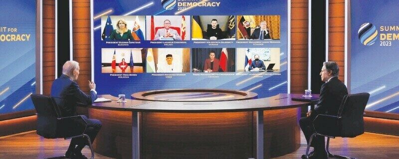 امریکا کے صدر جو بائیڈن نے خارجہ پالیسی میں انسانی حقوق اور جمہوریت کی بہتری کے لیے سست پیش رفت پر ان کی انتظامیہ پر تنقید کے بعد دنیا بھر میں جمہوریت کے فروغٖ کے لیے نئی فنڈنگ کا اعلان کر دیا۔مانیٹرنگ کے مطابق بائیڈن نے وائٹ ہاؤس کی سربراہی میں دوسری ڈیموکریسی کانفرنس کے موقع پر کرپشن کے خلاف جنگ میں مدد، آزادانہ اور شفاف انتخابات کے لیے تعاون اور ٹیکنالوجی کے فروغ میں مدد کے لیے 69 کروڑ ڈالر فنڈنگ کے منصوبے کا اعلان کیا جو جمہوری حکومتوں کے لیے سود مند ہے۔امریکی صدر نے 2021 میں منعقدہ اسی طرح کے اپنے آخری پروگرام میں 40کروڑ ڈالر کے منصوبے کا اعلان کیا تھا۔بائیڈن نے کہا کہ ہم یہاں رخ موڑ رہے ہیں، جیسا کہ ہم اکثر کہتے ہیں کہ ہم اس وقت تاریخ میں دھارا پلٹنے کے نکتے پر ہیں، آج ہم اگلی کئی دہائیوں کے لیے دنیا پر اثرات کے حوالے سے فیصلے کر رہے تھے۔انسانی حقوق کے کارکنوں کا کہنا تھا کہ کانفرنس میں شرکت کرنے والے ممالک میں جمہوریت پر معمولی پیش رفت ہوئی ہے اور شرکا کے پاس اپنے وعدوں کی بارآوری کے لیے باقاعدہ کوئی حکمت عملی نہیں ہے جو انہوں نے پہلے اجلاس میں کیا تھا جہاں بائیڈن اور جنوبی کوریا نے تیسری کانفرنس کی میزبانی کے منصوبے کا اعلان کیا تھا۔فریڈم ہاؤس کا کہنا تھا کہ عالمی سطح پر آزادی مسلسل 17 ویں سال گری ہے لیکن مانیٹرنگ گروپ کی ڈپٹی ڈائریکٹر فار پالیسی اور ایڈووکیسی کیٹی لا روک نے کہا کہ ایسے نشان بھی ہیں کہ رخ تبدیل ہو رہا ہے۔انہوں نے وضاحت کرتے ہوئے بتایا کہ فریڈم ہاؤس کی سالانہ درجہ بندی میں 35 ممالک کا اسکور گرا ہے اور 34 ممالک کا اسکور بہتر ہوا ہے۔ڈیموکریسی کانفرنس میں شرکت کرنے والے ممالک میں سے 77کا اسکور 2022 میں بدستور ایک جیسا رہا، 17 کا اسکور گرا اور صرف 16 کا اسکور بہتر ہوا۔اجلاس سے خطاب کرتے ہوئے اسرائیل کے وزیراعظم نیتن یاہو نے اعتماد ظاہر کیا کہ عدالتی اصلاحات پر سیاسی سمجھوتہ ہو سکتا ہے، جس سے عوامی آزادی ہم آہنگ ہوسکتی ہے جبکہ ان کے مخالفین کا الزام ہے کہ انہوں نے عدلیہ کی آزادی پر قدغنیں لگا رکھی ہیں۔نیتن یاہو نے کہا کہ بائیڈن سے 40 برس کی دوستی ہے، اسرائیل اور امریکا کے درمیان اختلافات وقتی ہوتے ہیں لیکن میں آپ کو یقین دلانا چاہتا ہوں کہ مشرق وسطیٰ کے قلب میں دنیا کی عظیم ترین جمہوریت کے ساتھ اشتراک اور مضبوط جمہوریت غیرمتزلزل ہے، کچھ تبدیل نہیں ہوگا۔بیرونی ناقدین کو مخاطب کرتے ہوئے نیتن یاہو نے وعدہ کیا کہ اسرائیل ہمیشہ مضبوط اور قابل تعریف جمہوریت رکھتا ہے اور اس کو جاری رکھے گا جو مشرق وسطیٰ کے مرکز میں آزادی اور خوش حالی کا نشان ہے۔امریکی صدر بائیڈن نے اس سے قبل خبردار کیا تھا کہ اسرائیل اس طرح تنزلی کی طرف نہیں جاسکتا اور نیتن یاہو سے سمجھوتہ کرنے کا مطالبہ کیا تھا اور ساتھ ہی اسرائیل کے لیے اپنی بھرپور حمایت کا یقین بھی دلایا تھا۔ڈیموکریسی کانفرنس کی میزبانی کوسٹاریکا، نیدرلینڈز، جنوبی کوریا اور زیمبیا کی حکومتوں نے مشترکہ طور پر کی، کانفرنس میں تائیوان، سول سوسائٹی کے گروپس اور ٹیکنالوجی کی کمپنیوں سمیت 120 ممالک نے شرکت کی۔