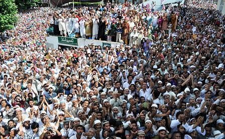 درگاہ حضرتبل میں لوگوں کا سیلاب اُمڑ آیا، جامع مسجد سرینگر کے ممبر ومحراب خاموش