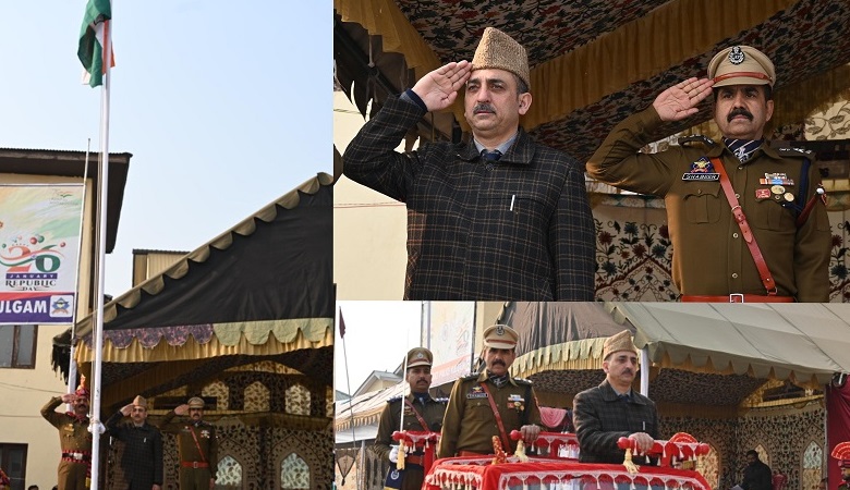 کولگام میں آج ڈسٹرکٹ پولیس لائنز کولگام میں ایک فل ڈریس ریہرسل کا اِنعقاد کیا گیا جہاں ایڈیشنل ڈسٹرکٹ ڈیولپمنٹ کمشنر کولگام (اے ڈی ڈی سی) کولگام شوکت احمد راتھر نے قومی پرچم لہرایا اور پریڈ کا معائینہ کیا اور مارچ پاسٹ کی سلامی لی۔سی آر پی ایف، جموں و کشمیر پولیس، ہوم گارڈز، این سی سی، خواتین پولیس دستے، طالبات اور دیگر دستوں نے مارچ پاسٹ پیش کیا۔اِس موقعہ پر اے ڈی ڈی سی نے خطاب کرتے ہوئے کہا کہ کولگام متعدد محاذوں پر ترقی کی راہ پر گامزن ہے۔ اُنہوں نے ضلع میں مکمل ہونے والے مختلف منصوبوں کا ذِکر کیا اور کہا کہ ضلع نے متعدد شعبوں میں شاندار کامیابیاں حاصل کی ہیں۔اُنہوں نے مزید کہا کہ ضلعی اِنتظامیہ صحت، تعلیم اور دیگر اہم شعبوں کو مضبوط بنانے کے لئے پُرعزم ہے اور ضلع کی مجموعی ترقی کے لئے کام کر رہی ہے۔اِس موقعہ پرطلبأکی جانب سے رنگا رنگ ثقافتی پروگرام بھی پیش کئے گئے جس سے حاضرین و سامعین محظوظ ہوئے۔ پروگرام میں اے ڈی سی وقار احمد گیری، اے سی آر، اے ایس پی اور سول اور پولیس اِنتظامیہ کے دیگر افسران نے شرکت کی۔