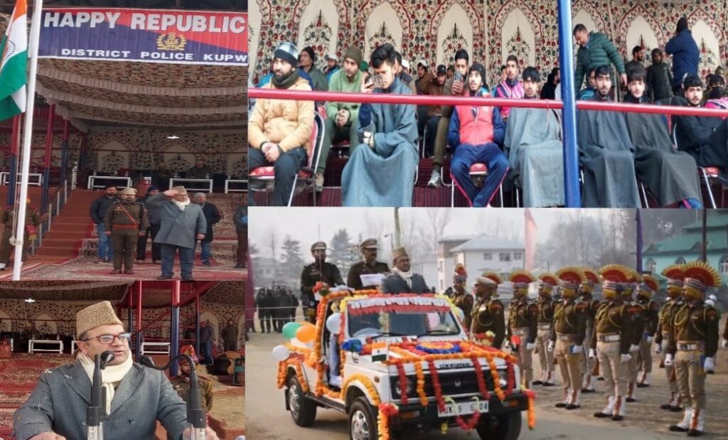کپواڑہ میں یوم جمہوریہ کی تقریبات 2024 ء کی فُل ڈریس ریہرسل ڈسٹرکٹ پولیس لائنز کپواڑہ میں منعقد ہوئیء جہاں ایڈیشنل ڈپٹی کمشنر (اے ڈی سی) کپواڑہ غلام نبی بٹ نے قومی پرچم لہرایا، پریڈ کا معائینہ کیا اور جے کے پی، جے کے اے پی، سی آر پی ایف، آئی آر پی، ہوم گارڈز، ایف پی اور سکولی بچوں کے دستوں کی طرف سے پیش کردہ مارچ پاسٹ پر سلامی لی۔اے ڈی سی نے تقریب سے خطاب کرتے ہوئے ضلع میں رواں مالی برس کے دوران شروع کئے گئے مختلف بڑے ترقیاتی منصوبوں پر روشنی ڈالی۔تقریب کے دوران سکولی بچوں نے مختلف ثقافتی پروگرام پیش کئے۔اِس موقعہ پر اے ایس پی فرحت جیلانی، اے سی پی، ڈی آئی او، ڈی ایس پی ڈار، ڈی ایس پی ہیڈکوارٹر، سول اور پولیس افسران موجود تھے۔ہندواڑہ میں، ڈسٹرکٹ پولیس لائنز ہندواڑہ میں فُل ڈریس ریہرسل کا اِنعقاد کیا گیا جہاں سب رجسٹرار ہندواڑپ اَرشد احمد خان نے قومی پرچم لہرایا، پریڈ کا معائینہ کیا اورجے کے پی ، جے کے اے پی ، بی ایس ایف ، سی آر پی ایف ،آئی آر پی اور پولیس بینڈ کے دستوں کی طرف سے پیش کئے گئے مارچ پاسٹ پر سلامی لی۔ اس موقعہ پر سول انتظامیہ، محکمہ پولیس اور دیگر متعلقہ افسران موجود تھے۔کرناہ سب ڈویژن میں فُل ڈریس ریہرسل کا انعقاد کیا گیا جہاں تحصیلدار کرناہ سید ایاد قادری نے قومی پرچم لہرایا اور مارچ پاسٹ پر سلامی لی۔ اس دوران سکولی بچوں نے رنگا رنگ پروگرام بھی پیش کئے۔لولاب سب ڈویژن کے سوگام میں بھی فُل ڈریس ریہرسل کا انعقاد کیا گیا جس میں تحصیلدار سوگام نے قومی پرچم لہرایا اور مارچ پاسٹ پرسلامی لی۔ اس دوران سکولی بچوں نے مختلف ثقافتی پروگرام پیش کئے۔ضلع بھر کے مختلف تعلیمی اداروں میں فُل ڈریس ریہرسل کی تقریبات بھی منعقد کی گئیں۔