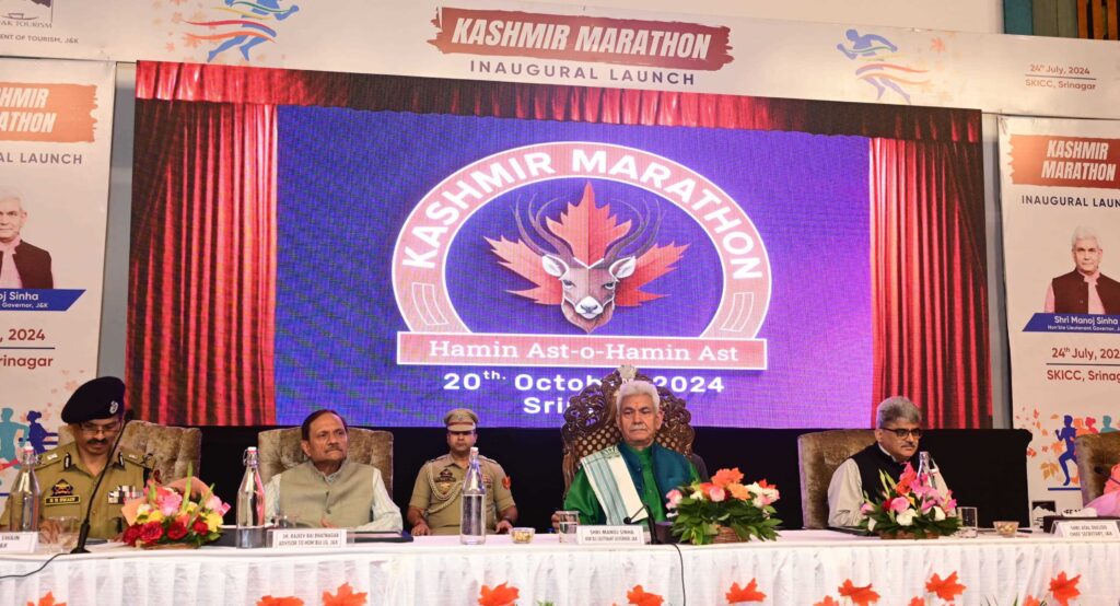 لیفٹیننٹ گورنر نے کہا ،’’ ہم اس تقریب کو امن اور ہم آہنگی کا مینار بنانا چاہتے ہیں۔ مجھے یقین ہے کہ کشمیر میراتھن جموں و کشمیر کو عالمی نقشے پر مضبوطی سے جگہ دے گی اور اس سے یوٹی کی عالمی سطح پر شناخت میں اِضافہ ہوگا جس سے سیاحت کے ایک اعلیٰ مقام کے طور پر ہماری صلاحیتوں کو اُجاگر کیا جائے گا۔‘‘اُنہوں نے کہا کہ کشمیر میراتھن سری نگر میں کامیاب ایف فور ریسنگ ایونٹ، جموں میں سن برن میوزک فیسٹول اور حال ہی میں سری نگر میں منعقدہ جموں و کشمیر ٹوراِزم ڈیولپمنٹ کنکلیو کے بعد جموں و کشمیر میں منعقد ہونے والے عالمی معیار کے ایونٹوں کے سلسلے میں اگلا اضافہ ہے۔ اُنہوں نے کہا کہ ہم سالانہ ’’جموں میراتھن‘‘ کے اِنعقاد کے امکانات تلاش کر رہے ہیں۔