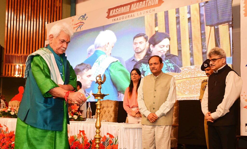 سری نگر//لیفٹیننٹ گورنر منوج سِنہا نے سری نگر میں 20؍اکتوبر کو منعقد ہونے والی کشمیر میراتھن کے اِفتتاحی ایڈیشن کے لوگو، ویب سائٹ اور ٹیزر کی نقاب کشائی کی۔اُنہوں نے اَپنے خطاب میں جموں و کشمیر کے محکمہ سیاحت اور بین الاقوامی ایونٹ سے وابستہ تمام شراکت داروں کو مُبارک باد دی۔ اُنہوں نے دُنیا کے کونے کونے کے رنروں کو کشمیر میراتھن میںشرکت کرنے اور جموں وکشمیر کے منفرد دِلکش کا تجربہ کرنے کی دعوت دی۔