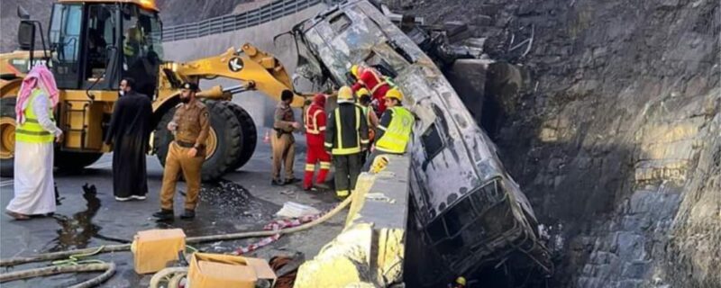 سعودی عرب میں زائرین کو مکہ لے جانے والی بس حادثے کا شکار ہوئی جس کے نتیجے میں 20 افراد جاں بحق اور دو درجن سے زائد افراد زخمی ہوگئے۔ ڈان اخبار نے غیر ملکی خبر ایجنسی ’اے ایف پی‘ کے حوالے سے رپورٹ میں بتایا کہ زائرین کو مکہ لے جانے والی بس ایک پُل سے ٹکرائی، جس کے بعد اس میں آگ لگی اور 20 افراد جاں بحق اور دیگر زخمی ہوئے۔بس حادثہ سعودی عرب کے جنوبی صوبے عسیر میں پیش آیا، جس سے زائرین کو مکہ اور مدینے جانے کے دوران محفوظ سفر کے حوالے سے درپیش خطرات نمایاں ہوگئے ہیں۔سرکاری ’الخباریہ‘ چینل نے رپورٹ کیا کہ ’ابتدائی معلومات کے مطابق ہمیں حادثے میں 20 اموات کی اطلاع موصول ہوئی اور زخمیوں کی مجموعی تعداد 29 ہے‘۔حادثے کے شکار افراد کے حوالے سے بتایا گیا کہ ان کا تعلق مختلف ممالک سے تھا لیکن ان کی شناخت یا دیگر تفصیلات نہیں دی گئیں۔چینل نے بتایا کہ بس کے ساتھ ’بریک کا مسئلہ‘ پیش آیا تھا تاہم وضاحت نہیں کی جبکہ اخبار ’اوقاز‘ نے رپورٹ کیا کہ حادثہ بریکس کی وجہ سے پیش آیا۔رپورٹ کے مطابق بس اس کے بعد پُل سے ٹکرا کر الٹ گئی اور آگ لگی۔