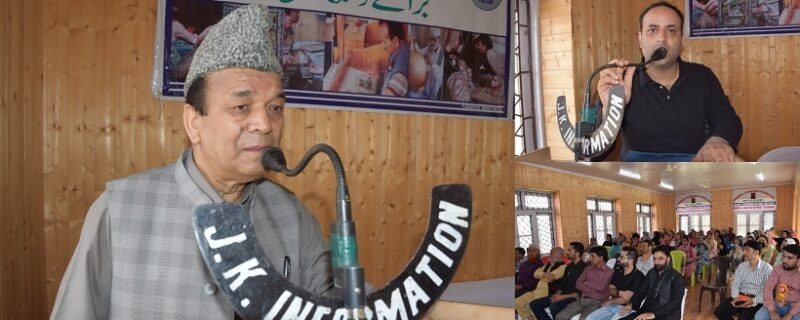 بڈگام//سپیکر جموں و کشمیر قانون ساز اسمبلی عبد الرحیم راتھر نے ناگام چاڈورہ میں ایک روزہ میگا بیداری کیمپ و سمینار کا اِفتتاح کیا۔ بیداری کیمپ کا اِنعقاد محکمہ ہینڈی کرافٹس و ہینڈلوم نے کیا تھا۔اِس کیمپ میں مختلف محکموں کے اَفسران و ملازمین کے علاوہ کاریگروں، بْنکروں، تربیت حاصل کرنے والوں نے بھرپور شرکت کی۔سپیکر موصوف نے اَپنے اِفتتاحی خطاب میں کشمیر کی عظیم ثقافتی ورثے کے تحفظ میں کاریگروں کے رول کو سراہا۔ اُنہوں نے زور دیا کہ کاریگر خلوص اور لگن و محنت کے ساتھ اَپنے ہنر کو آگے بڑھاتے ہوئے اِختراع او مارکیٹ سے چلنے والے طریقوں کو اَپنائیں ۔عبدالرحیم راتھر نے خود انحصاری پر زور دیتے ہوئے کہا کہ کاریگروں کو چاہیے کہ وہ روزگار تلاش کرنے والے کے بجائے روزگار دینے والے بنیں۔ اُنہوں نے کاریگروں کی سماجی و اقتصادی ترقی کے لئے ہر ممکن تعاون کی یقین دہانی بھی کی۔اِس موقعہ پر اسسٹنٹ ڈائریکٹر ہینڈی کرافٹس و ہینڈ لوم بڈگام نے محکمہ کی جانب سے ہینڈی کرافٹس و ہینڈلوم شعبے کو مضبوط کرنے کے لئے اُٹھائے گئے اقدامات اور کامیابیوں پر روشنی ڈالی۔ اُنہوں نے کاریگروں پر زور دیا کہ وہ محکمہ کی طرف سے عملائی جارہی فلاحی سکیموں اور تربیتی پروگراموں سے بھرپور فائدہ اُٹھائیں۔مختلف محکموں کے دیگر مقررین نے بھی کاریگروں اور تربیت یافتہ اَفراد کے لئے دستیاب سکیموں اور مواقع پر تفصیلی روشنی ڈالی۔اِس موقعہ پرڈِپٹی رجسٹرار کوآپریٹیوز بڈگام ،اسسٹنٹ رجسٹرار کواپریٹیو بڈگام، پرنسپل گورنمنٹ پولی تکنیک کالج اور گورنمنٹ گرلز ہائیر سیکنڈری سکول چاڈورہ ، جے اینڈ کے بینک ناگام چاڈورہ کے نمائندگان اور دیگر متعلقین بھی موجود تھے۔