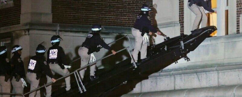 امریکی شہر نیویارک کے سیکڑوں پولیس اہلکار کولمبیا یونیورسٹی کے کیمپس میں داخل ہوگئے، متعدد افراد کو حراست میں لے لیا۔غزہ میں اسرائیلی مظالم کے خلاف امریکی یونیورسٹیوں میں احتجاجی مظاہرے 18 اپریل سے شروع ہوئے تھے، یہ احتجاج سب سے پہلے نیویارک یونیورسٹی میں ہوا اور پھر دیکھتے ہی دیکھتے امریکا کی دیگر یونیورسٹیوں میں بھی پھیل گئے تھے۔یہی نہیں بلکہ یہ مظاہرے پورے یورپ میں بھی پھیل گئے ہیں، جس کے نتیجے میں قانون نافذ کرنے والے اداروں اور طلبہ کے درمیان جھڑپے ہوئے اور کشیدگی پھیل گئی۔طلبہ اسرائیل کو ہتھیار فروخت کرنے والی کمپنیوں کے ساتھ تعلقات اور شخصیات کا بائیکاٹ کا مطالبہ کررہے ہیں۔الجزیرہ کی رپورٹ کے مطابق مقامی وقت رات 9 بجے پولیس ہیملٹن ہال کے ذریعے یونیورسٹی میں داخل ہوئی، درجنوں پولیس اہلکاروں نے پیش قدمی کرتے ہوئے عمارت کو خالی کرانا شروع کر دیا جس کے گرد فلسطین کے حامی طلبہ مظاہرین نے رکاوٹیں کھڑی کر رکھی تھیں۔ہیملٹن ہال کو صبح کے وقت طلبہ نے رکاوٹیں کھڑی کر کے بلاک کر دیا تھا اور کہا تھا کہ وہ کسی بھی بے دخلی کا مقابلہ کریں گے۔پولیس کی جانب سے وارننگ کے باوجود کئی مظاہرین نے اپنا احتجاج جاری رکھنے کا عزم ظاہر کیا ہے۔ایک تصویر میں پولیس کو ٹرک سے ہیملٹن ہال کی دوسری منزل پر جاتے دیکھا جاسکتا ہے۔خبر رساں ادارے اے پی پی کے مطابق پولیس کی کیمپس سے 30 سے 40 افراد کو گرفتار کیا، مظاہرین کے ہاتھ پیچھے باندھے انہیں پولیس وین میں لے جاتے دیکھا گیا۔اس دوران عمارت کے باہر سے احتجاجی مظاہرین نے ’فلسطین کو آزاد کرو‘، ’طلبہ کو رہا دو‘ کے نعرے بھی لگائے۔کولمبیا یونیورسٹی کے ترجمان کا کہنا ہے کہ نیویارک پولیس یونیورسٹی کی درخواست پر کیمپس میں داخل ہوئی تھی۔یاد رہے کہ 18 اپریل سے اب تک تقریباً 900 مظاہرین کو امریکی یونیورسٹیوں سے گرفتار کیا جا چکا ہے۔