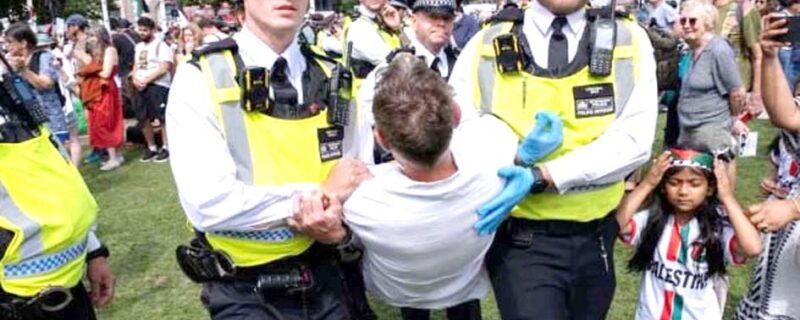 لندن/ایجنسیز// لندن میں پارلیمنٹ اسکوائر پر فلسطین ایکشن کے حامیوں نے احتجاج کیا، جس کے دوران پولیس نے کارروائی کرتے ہوئے 466 مظاہرین کو گرفتار کر لیا، جن میں خواتین بھی شامل تھیں۔مظاہرین کے ہاتھوں میں پلے کارڈز تھے جن پر اسرائیل کی جانب سے غزہ میں جاری فلسطینیوں کی نسل کشی کے خلاف نعرے درج تھے۔ مظاہرے کے منتظمین کے مطابق اس میں 600 سے 700 افراد شریک ہوئے۔ ، تاہم پولیس نے اتنی بڑی تعداد میں شمولیت کے دعوے کی تردید کی۔پولیس کے مطابق فلسطین ایکشن پر 5 جولائی 2025 سے ٹیررازم ایکٹ کے تحت پابندی عائد ہے، اور اس گروہ کی رکنیت یا حمایت پر 14 سال قید کی سزا ہو سکتی ہے۔
