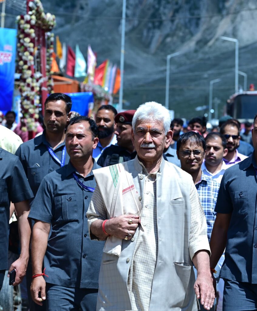 گاندربل//لیفٹیننٹ گورنر منوج سِنہانے بال تال بیس کیمپ کا دورہ کر کے شری اَمرناتھ جی یاترا۔ 2025 کے جاری اِنتظامات کا تفصیلی جائزہ لیا۔لیفٹیننٹ گورنر نے کیمپ ڈائریکٹر، ضلع اِنتظامیہ، پولیس اور سیکورٹی ایجنسیوں کے اَفسران کے ساتھ ایک میٹنگ کی صدارت کی جس میں یاتریوں کی آسان اور محفوظ آواجاہی کو یقینی بنانے کے لئے کئے گئے اَقدامات پر تبادلہ خیال کیا گیا۔اُنہوں نے مٹی کے پھسلنے سے بچاؤ کے لئے کئے گئے اَقدامات کے ساتھ ساتھ یاتریوں کے لئے آرام دہ قیام، خوراک، صحت سہولیات،کنکٹویٹی، صفائی، پانی و بجلی کی فراہمی، ٹریفک مینجمنٹ، موقعہ پر رجسٹریشن اور دیگر اِنتظامات کا جائزہ بھی لیا۔