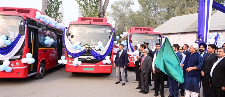 لیفٹیننٹ گورنر نے نشاط بس ٹرمنل پر 75 اِی ۔ بسوں کے بیڑے کوہری جھنڈی دِکھا کر روانہ کیا