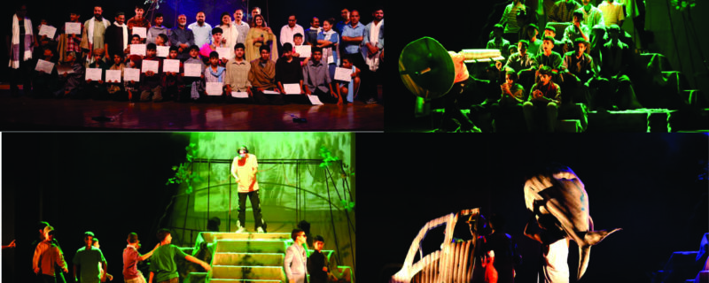 سرینگر/جمیل انصاری/نیشنل اسکول آف ڈرامہ (NSD) ٹی آئی ای سینٹر، سری نگر کی جانب سے کشمیر کے اسکولی بچوں کے لیے اسپرنگ بڈز ایجوکیشنل انسٹی چیوٹ اوم پورہ بڈگام کے اشتراک سے منعقدہ 20 روزہ تھیٹر ورکشاپ آج اختتام پذیر ہوا۔ ورکشاپ کے شرکاء نے ٹیگور ہال سری نگر میں ایک شاندار ڈرامہ ’’سوچو تو ویا دھی‘‘ پیش کیا، جسے ممتاز تھیٹر ڈائریکٹر شری پبتر رابھا نے ڈیزائن اور ڈائریکٹ کیا تھا۔یہ ورکشاپ تھیٹر پیڈاگوجی پر مبنی تھی جس کا مقصد بچوں کی صلاحیتوں کو نکھارنا، ان کی نفسیاتی و جسمانی نشوونما میں بہتری لانا اور ان کی لائف اسکلز کو فروغ دینا تھا۔تقریب کے مہمانِ خصوصی جموں و کشمیر (یو ٹی) کے محکمہ ثقافت کے پرنسپل سیکرٹری شری برج موہن شرما (آئی ایف ایس) تھے۔ اعزازی مہمان کے طور پر کلچرل اکیڈیمی کے ایڈیشنل سیکریٹری عدیل سلیم (جے کے اے ایس)، جبکہ محمد شفی قریشی، چیئرمین اسپرنگ بڈز ایجوکیشنل انسٹی چیوٹ خصوصی مہمان کے طور تقریب پر پر موجود تھے۔تقریب کا آغاز نیشنل اسکول آف ڈرامہ، ٹی آئی ای سینٹر سری نگر کے ڈائریکٹر اِن چارج دیپنکر پال کے استقبالیہ خطبے سے ہوا۔ انہوں نے مہمانوں کا خیرمقدم کیا اور ورکشاپ میں شریک بچوں کو سراہا جنہوں نے اس تربیتی پروگرام کے ذریعے اپنی شخصیت اور زندگی کی مہارتوں کو نکھارنے کا موقع حاصل کیا۔استقبالیہ خطاب کے بعد مہمانوں کو شیلڈز اور مومنٹوز پیش کیے گئے، جنہیں دیپنکر پال اور کوآرڈینیٹر، این ایس ڈی ٹی آئی ای سینٹر، سری نگرگلزار گنائی نے مشترکہ طور پر پیش کیا۔مہمانِ خصوصی شری برج موہن شرما نے اپنے خطاب میں کہا کہ تھیٹر ایک فن کے طور پر ہماری تاریخ اور ثقافت کا حصہ رہا ہے۔ انہوں نے نیشنل اسکول آف ڈرامہ کے اس کردار کو سراہا جو اس نے جموں و کشمیر میں تھیٹر کو فروغ دینے کے لیے ادا کیا ہے۔بچوں کی شاندار پرفارمنس نے حاضرین کو آخر تک محو رکھا۔ ڈرامے کی پیشکش کے بعد شریک طلبہ کو معزز مہمانوں اور بڑی تعداد میں موجود ناظرین کے سامنے اسنادِ شرکت (سرٹیفکیٹس) سے نوازا گیا۔تقریب میں تھیٹر کی معروف شخصیات بشیر بھوانی، محمد امین بٹ، شفیع قریشی، الطاف حسین، ارشد مشتاق سمیت دیگر اہم شخصیات نے بھی شرکت کی اور تقریب کو رونق بخشی۔ورکشاپ کے دوران تربیتی نشستوں کی قیادت نیشنل اسکول آف ڈرامہ کے ماہرین پبتر رابھا (تصور، ڈیزائن اور ڈائریکشن)، دیپو رابھا (موسیقی) تسیرنگ لہمو (کاسٹیوم ڈیزائن)، سشیل کانت مشرا،(ٹیکنیکل سپورٹ)نے کی ۔تقریب کے اختتام پر دیپنکر پال نے تمام مہمانوں، شرکاء اور ناظرین کا شکریہ ادا کیا۔