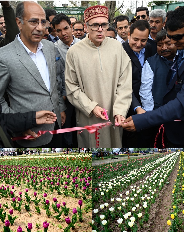 سری نگر//وزیر اعلیٰ عمر عبداللہ نے سری نگر کے مشہور باغِ گلِ لالہ میں ٹیولپ شو۔ 2025 کا افتتاح کیا۔ یہ باغ، جو ایشیا کا سب سے بڑا ٹیولپ گارڈن ہے، زبرون پہاڑی سلسلے کے دامن میں واقع ہے اور آج سے عام لوگوں کے لئے باضابطہ طور پر کھول دیا گیا ہے۔یہ باغ 1.5 ملین سے زائدموسم بہار میں کھلنے والے پھولوں پر مشتمل ہے جن میں 74 سے زیادہ اقسام کے ٹیولپ شامل ہیں۔ اِس کے علاوہ یہاں رنگ برنگے ڈافوڈلز، ہائیسنتھ اور مسکاری کے پھول بھی موجود ہیں جو ایک شاندار اور دِلکش نظارہ پیش کرتے ہیں۔