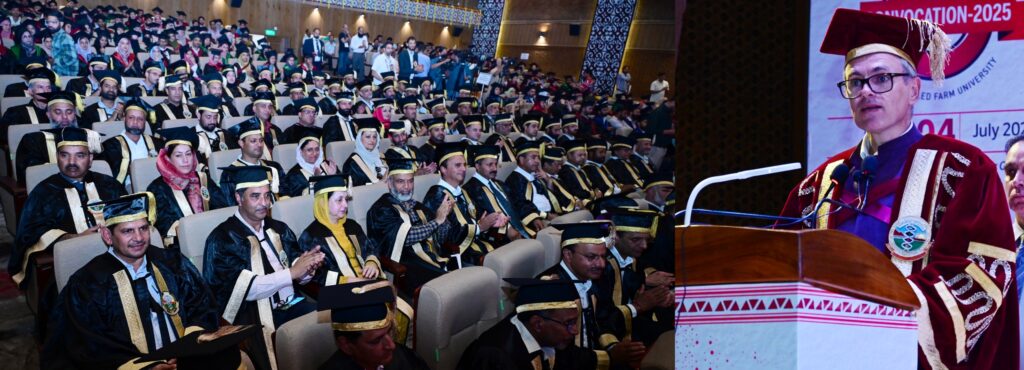 وزیر اعلیٰ عمر عبداللہ نے کہا کہ ریاست کا فوکس درست طریقہ زراعت، فصل کے بعد کے انتظام اور ڈیٹا کے ذریعے پیداوار اور مارکیٹ تک رسائی کو بہتر بنانے پر ہے اور نوجوانوں سے اپیل کی کہ وہ تحقیق اور کاشتکاروں کے درمیان رابطے کا ذریعہ بنیں۔اُنہوں نے اپنے خطاب سے پہلے حلف برداری کی قیادت کی جس میں فارغ التحصیل طلبأ نے سچائی، فرض شناسی، ثابت قدمی اور ترقی کو برقرار رکھنے کا عہد کیا۔اُنہوں نے اس بات پر خوشی کا اظہار کیا کہ اس برس گولڈ میڈل زیادہ تر طالبات کو دئیے گئے۔وزیر اعلیٰ نے اس سرزمین کی بیٹیو، آپ اپنی ذہانت سے ایک سنہری مستقبل رقم کر رہی ہو۔ دعا ہے کہ روشن رہو، دوسروں کے لئے مشعل راہ بنو۔‘‘ اُنہوں نے طالب علموں اور ان کے کنبوں کو مُبارک باد دی۔ وزیر اعلیٰ نے تمام فارغ التحصیل طلباء، ایوارڈ حاصل کرنے والوں اور فیکلٹی کو مُبارک باد دیتے ہوئے اس اعتماد کا اظہار کیا کہ جموں و کشمیر کے نوجوان اس خطے کو سائنسی، دیرپا اور باوقار مستقبل کی طرف لے جائیں گے۔