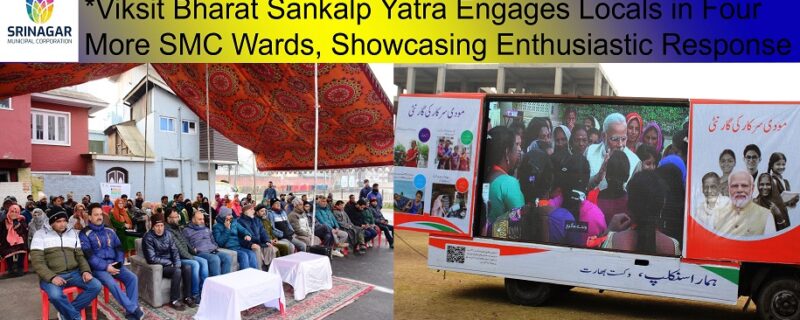 سری نگر //وِکس بھارت سنکلپ یاترانے حول، مدین صاحب، لال بازار اور حضرت بل کی متحرک کمیونٹیوں کے ذریعے اَپنا سفر جاری رکھا جس میں اِنفارمیشن ، ایجوکیشن اور کمیونی کیشن ( آئی اِی سی )سیٹ اَپ کے ارد گرد جمع ہونے والے مقامی باشندوں کی طرف پرجوش ردِّعمل ملا۔مقامی معززین اور کمیونٹی رہنمائوں کی موجودگی میں منعقد ہونے والے اِس پروگرام میںحاضرین وسامعین نے وِکست بھارت سنکلپ یاترا مہم کی اہمیت کے بارے میں وزیر اعظم کے پیغامات کو غور سے سنا۔مقامی لوگوں نے قومی ترقی کے ویژن کو قبول کیا اور پروگرام کے حصے کے طور پر’’ہمارا سنکلپ وِکست بھارت‘‘ کا عہد لے کر اَپنے عزم کا اِظہار کیا۔معلوماتی نشستوں کے علاوہ اِجتماع کو باصلاحیت مقامی فنکاروں کی طرف سے پیش کئے جانے والے دِل کش ثقافتی پروگراموں کے ساتھ پیش کیا گیا جس نے اِس موقعہ پر جشن کے ماحول میں اِضافہ کیا۔جاری یاترا کا مقصد مختلف فلیگ شپ سکیموں کی نمائش کرنا ہے جو ملک کے منظر نامے کو تبدیل کر رہی ہیں ، کمیونٹیوں کو بااِختیار بنا رہی ہیں اور جامع ترقی کو فروغ دے رہی ہیں۔ یہ سماج کے ہر طبقے کی ترقی اور خوشحال، ترقی یافتہ ہندوستان کو فروغ دینے کے لئے حکومت کے عزم کا ثبوت ہے۔