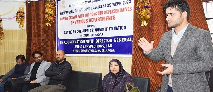 سری نگر//جے اینڈ کے ایڈوکیٹ جنرل آرگنائزیشن نے ویجی لنس بیداری ہفتہ کے موقعہ پر’’حلف لینے کی تقریب‘‘ کا اِنعقاد کیا۔ یہ تقریب ایڈوکیٹ جنرل جموں و کشمیر ڈی سی رینہ کی صدارت میں منعقد ہوئی جس میں تمام لأ اَفسران، سرکاری کونسلوں، اَفسران اور دیگر ملازمین نے شرکت کی۔دریں اثنا، سری نگر آفس کمپلیکس میں بھی اِسی طرح کی حلف برداری کی تقریب منعقد ہوئی جس کی صدارت سینئر ایڈیشنل ایڈوکیٹ جنرل سری نگرمحسن الشوکت قادری نے کی جس میں تمام لأ اَفسران اور سرکاری کونسلوں، افسران اور ملازمین نے شرکت کی۔شرکأ نے اس سلسلے میں سینٹرل ویجی لنس کمیشن اور حکومت جموں و کشمیر کے سرکلر ہدایات کی تعمیل کا عہد کیا۔ایڈووکیٹ جنرل نے بروقت اَقدامات کے لئے سرکاری کاروبار کو چلانے کے لئے اَپنے مینڈیٹ سے متعلق فوکس ائیریاکو بہتر بنانے کی کوششوں اور کارکردگی کو سراہا۔ اُنہوں نے شرکأ کو شفافیت، جوابدہی، اپنی ذمہ داریوں کو بانٹنے اور بنیادی طور پر دیانتداری کی ضرورت کے بارے میں آگاہ کیا۔اُنہوں نے تمام شرکأ کو ہدایت دی کہ وہ اَپنی مدت کار کے ہر وقت اَپنی صلاحیتوں میں اِضافہ کریں اور ایسے معاملات میں متعلقہ محکموں اور اِداروں کے لأاَفسران اور سرکاری کونسل کی حیثیت سے تیز رفتار اور بامقصد دلائل کے ذریعے رشوت ستانی کا خاتمہ کریں۔