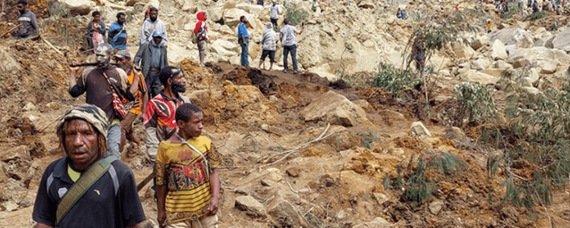 قومی آفات کے مرکز نے کہا ہے کہ پاپوا نیو گنی میں خطرناک لینڈ سلائیڈنگ کے نتیجے میں 2 ہزار سے زائد افراد زندہ دفن ہو گئے جبکہ دشوار گزار راستوں اور اس مقام تک امداد پہنچانے میں دشواری کے باعث ملبے سے زندہ بچ جانے والوں کو نکالنے میں مشکلات کا سامنا ہے۔خبر رساں ادارے ’رائٹرز‘ کی رپورٹ کے مطابق صوبہ اینگا کے یامبلی گاؤں کے آس پاس دفن ہونے والوں کی تعداد مقامی حکام کے اندازوں پر مبنی ہے جو جمعہ کو ہونے والی کے لینڈ سلائیڈنگ کے بعد سے مسلسل بڑھتی جا رہی ہے۔اقوام متحدہ کے ایک ادارے کے مطابق اتوار کو ہلاکتوں کی تعداد 670 سے زیادہ ہوگئی تھی۔نیشنل ڈیزاسٹر سینٹر نے اتوار کو اقوام متحدہ کو لکھے گئے ایک خط میں ملبے تلے دبنے والوں کی تعداد 2 ہزار بتائی ہے، انہوں نے کہا کہ لینڈ سلائیڈنگ نے عمارتوں اور کھانے کے باغات کو بھی بری طرح متاثر کیا ہے۔خط کے مطابق صورتحال غیر مستحکم ہے کیونکہ لینڈ سلپ آہستہ آہستہ طور پر منتقل ہوتا جا رہا ہے جس سے ریسکیو ٹیموں اور زندہ بچ جانے والوں دونوں کو یکساں خطرہ لاحق ہے۔کیئر انٹرنیشنل پاپوا نیو گنی کے کنٹری ڈائریکٹر جسٹن میک موہن نے پیر کو اے بی سی ٹیلی ویژن کو بتایا کہ متاثرہ علاقے کے قریب 4 ہزار لوگ رہائش پذیر تھے۔تاہم مقامی آبادی کا درست اندازہ لگانا مشکل ہے کیونکہ پاپوا نیو گنی کی آخری قابل اعتماد مردم شماری سال 2000 میں ہوئی تھی اور بہت سے لوگ دور دراز پہاڑی دیہات میں رہتے ہیں، ملک نے حال ہی میں 2024 میں مردم شماری کرانے کا اعلان کیا ہے۔غیر مستحکم صورتحال دور دراز مقام اور قریبی قبائلی جنگ پاپوا نیو گنی میں امدادی سرگرمیوں میں رکاوٹ ڈال رہی ہے۔