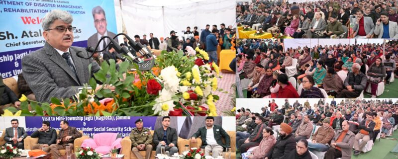 جموں//چیف سیکرٹری مسٹر اتل ڈولو نے جگٹی نگروٹہ میں مہاجرین کیلئے قائم منی ٹاؤن شپ کا دورہ کیا ۔ انہوں نے کشمیری مہاجرین کی بہتری کیلئے جاری مختلف ترقیاتی کاموں کا معائینہ کیا اور مختلف سماجی تحفظ اسکیموں کے تحت منظوری کے احکامات اور اہل مہاجر مستفیدین کو دوکانوں اور رہائشی کوارٹرز کے الاٹمنٹ آرڈرز تقسیم کئے ۔ کمشنر سیکرٹری ایف سی ایس اینڈ سی اے ، کمشنر سیکرٹری سماجی بہبود ، آئی جی پی جموں ، ڈپٹی کمشنر جموں ، کمشنر جے ایم سی ، کمشنر ریلیف ری ہیبلی ٹیشن اینڈ ری کنسٹریکشن ، یو ٹی انتظامیہ کے سینئر افسران ، نگروٹہ ، پرکھو اور مٹھی کیمپ سے کشمیری مہاجر آبادی موجود تھی ۔ چیف سیکرٹری نے اپنے دورے کا آغاز منی ٹاؤن شپ میں ہسپتال کے کام کاج کا معائینہ کرتے ہوئے کیا جہاں انہوں نے جگٹی کیمپ میں رہائش پذیر مہاجر آبادی کیلئے صحت کی دیکھ بھال اور طبی سہولیات کا جائیزہ لیا ۔ انہوں نے گھروں کو بلا تعطل پانی کی فراہمی کیلئے پانچواں بور ویل کا بھی افتتاح کیا ۔ اس کے بعد چیف سیکرٹری نے سماجی تحفظ اسکیموں بشمول بوڑھاپا،بیوگی اور معذوری پنشن کے منظوری کے احکامات اور اہل مستفیدین کو دوکانوں اور رہائشی کوارٹرز کے الاٹمنٹ آرڈرز تقسیم کئے ۔ اس موقع پر خطاب کرتے ہوئے چیف سیکرٹری نے کہا کہ تمام سماجی تحفظ اسکیموں کے فوائد جو پہلے مہاجر آبادی کو نہیں مل رہے تھے اب تمام اہل مستفیدین کو فراہم کردئیے گئے ہیں ۔ چیف سیکرٹری نے سائنس اینڈ ٹیکنالوجی ڈیپارٹمنٹ کو جگٹی میں منی ٹاؤن شپ میں سولر لائٹس نصب کرنے کی کی ہدیات دیں ۔