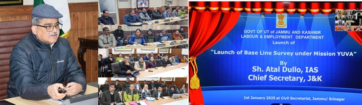 جموں//چیف سیکرٹری اَتل ڈولو نے مشن یووا (یووا ادیمی وِکاس ابھیان) کے تحت یو ٹی وائیڈ بیس لائن سروے کا آغاز کیا جو لیبر اینڈ ایمپلائمنٹ (ایل اینڈ ای) اور پلاننگ ڈپارٹمنٹوں کے ذریعے مشترکہ طور پر کیا جائے گا تاکہ تقریباً 1.37 لاکھ ممکنہ کاروباری اَفراد کی شناخت کی جاسکے اور موجودہ کاروباری اِداروں سے رائے لی جاسکے۔تقریب میں سیکرٹری محنت وروزگار محکمہ اور ڈِی جی اِی اینڈ ایس کے علاوہ یو ٹی یونیورسٹیوں کے وائس چانسلروں م ڈائریکٹر آئی آئی ایم جموں، ایم ڈی، جے کے بینک، ایم ڈی جے کے آر ایل ایم اور آئی آئی ٹی جموں، نبارڈ، بی آئی ایس اے جی ۔این کے نمائندوں کے علاوہ دیگر متعلقہ افسران نے بھی شرکت کی۔ضلع ترقیاتی کمشنروںنے اپنے متعلقہ دفاتر سے بذریعہ ویڈیو کانفرنسنگ اِفتتاحی تقریب میں شرکت کی۔اِس موقعہ پر چیف سیکرٹری نے اِس سروے کی اہمیت پر روشنی ڈالی اور نوجوانوں کو روزگار کے مواقع کے طور پر اَنٹرپرینیورشپ اور سیلف ایمپلائمنٹ کو اَپنانے کے لئے تیار کرنے کے اصل مقصد کو اُجاگر کیا۔اُنہوں نے متعلقہ محکموں پر زور دیا کہ وہ روزانہ کی بنیاد پر اِس عمل کی نگرانی کرکے اِس سروے کے معیار کو یقینی بنائیں۔ اُنہوں نے یہاں کی مختلف یونیورسٹیوں کے وائس چانسلروں کو یہ بھی مشورہ دیا کہ وہ اِس ڈیٹا کو مختلف تحقیقی مقالوں کی تکمیل میں مزید اِستعمال کریں۔
