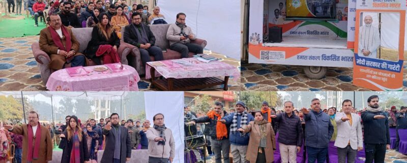 سانبہ//کمشنر سیکرٹری سیاحت یشامدگل نے آج ضلع سانبہ کے میونسپل پارک بڑی براہمناں ممیں ’وِکست بھارت سنکلپ یاترا‘کی قیادت کی۔اِس موقعہ پر کمشنر سیکرٹری نے مختلف محکموں کی جانب سے لگائے سٹالوں کا بغور معائینہ کیا۔ اُنہوں نے سٹالوں پر نمائشی اَقدامات کا جائزہ لینے کے لئے اَفسران اور مقامی لوگوں کے ساتھ سرگرم عمل رہی۔یاترا کا ایک اہم پہلو آئی اِی سی وین نے مختلف سرکاری سکیموں کے بارے میں بیداری پھیلائی جس کے بعد ’وکست بھارت ‘ کے لئے وزیر اعظم کے بصیرت انگیز پیغام کی سکریننگ کی گئی ۔کمشنر سیکرٹری نے اِن تمام شرکأ کوسنکلپ کا حلف دِلایا جنہوں نے ہندوستان کی ترقی میں جانفشانی سے حصہ اَدا کرنے کے لئے عہد کیا۔’’میری کہانی، میری زبانی‘‘ سیگمنٹ کے تحت اِستفادہ کنندگان نے پی ایم کسان، کے سی سی، پی ایم اے وائی، پی ایم جے اے وائی وغیرہ جیسی سکیموں کے تحت حاصل ہونے والے فوائد کی کامیابی کی داستانوں کا اِشتراک کیا۔ جامع زرعی ترقیاتی پروگرام ( ایچ اے ڈی پی ) کے تحت فوائد حاصل کرنے اور دکش کسان پورٹل کے اِستعمال پر خصوصی زور دیاگیا۔بعد ازاں ،سرکاری اِداروں کی سکولی طالبات نے ’دھرتی کہے پُکار کے‘کے موضوع پر دلکش ثقافتی پرفارمنس مظاہرہ کیا۔کمشنرسیکرٹری نے خواتین کھلاڑیوں، کوئز چمپئنز جیتنے والوں اور ثقافتی فن کاروں کو مُبارک باد پیش کی ۔اِس موقعہ پر ہوم سٹے رجسٹریشن سر ٹیفکیٹ تقسیم کئے گئے ، ایچ اے ڈی پی سے مستفید ہونے والوں کو بھی نوازا گیا۔اُنہوں نے اپنے خطاب میں اس بات پر زور دیاکہ ’’ وِکست بھارت سنکلپ یاترا ‘‘کا مقصد یہ یقینی بنانا ہے کہ فلیگ شپ سکیموں کے فوائد تمام اہل شہریوں تک پہنچیں ۔ آئی ا،ی سی وین کے ذریعے بیداری پیدا کر کے حکومت شہریوں کی دہلیز تک خدمات فراہم کرنے کا اِرادہ رکھتی ہے۔ کمشنر سیکرٹری نے نیشنل گرل چائلڈ ڈے کے موقعہ پرکہا کہ جوہر لڑکیوں کو بااِختیار بنانے اور انہیں آزادانہ فیصلہ سازی کے مساوی مواقع فراہم کرنے میں اہم کردار ادا کیا گیا ہے۔